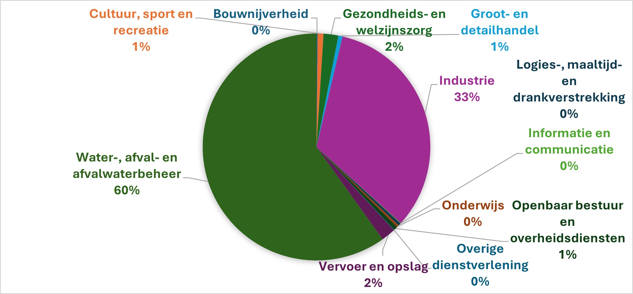 De uitstoot van CO2 (en equivalenten) door de grootste 50 bedrijfsmatige uitstoters in Dordrecht komt voor 60% van de sector afval en water, en voor 33% voor de industrie, waarbij dit voor 30%-punt de chemische industrie betreft.55