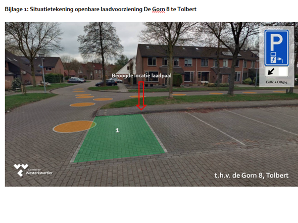 dat het gaat om één laadpaal (met twee oplaadaansluitingen) op het openbare parkeerterrein t.h.v. De Gorn 8 te Tolbert;