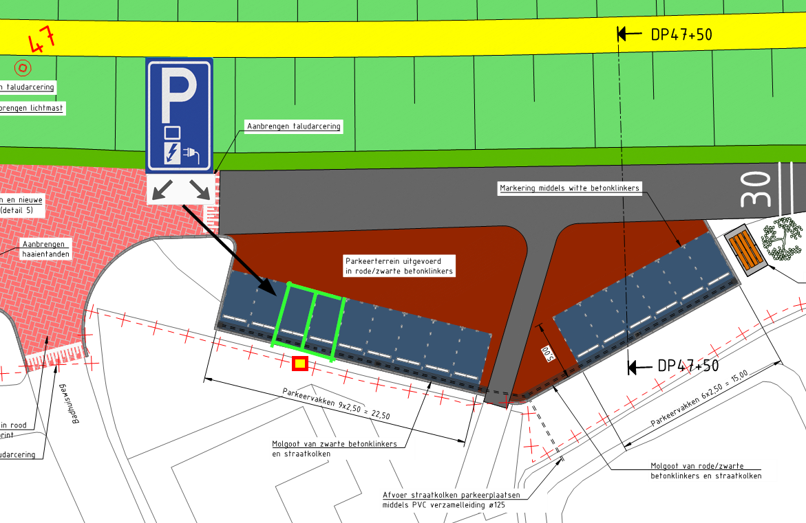 Dat dit gerealiseerd kan worden door middel van het plaatsen van het verkeersbord E8c als bedoeld in bijlage 1 van het RVV 1990 en een onderbord dat aanduidt dat het verkeersbord erboven van toepassing is op twee parkeervakken;
