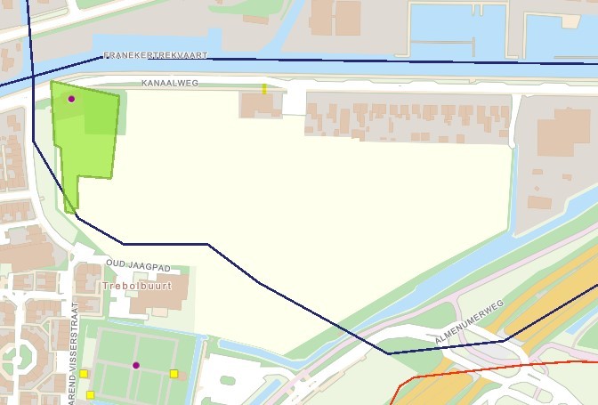 Op de oever van de buitenbocht in de oude trekvaart was het jaagpad gelegen dat nu de westgrens van het plangebied vormt. Het grootste deel van het plangebied ligt in de binnenbocht van de oude trekvaart naar Franeker. Deze oude trekvaart is gedempt. Op de Cultuurhistorische kaart is het jaagpad aangegeven als trekvaart.