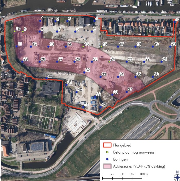 Dit onderzoek is uitgevoerd en in bijlage 13 opgenomen. Uit de resultaten van het onderzoek volgt dat de archeologische verwachting voor resten uit de ijzertijd tot en met de vroege middeleeuwen kan worden bijgesteld tot een lage verwachting. Door het nagenoeg volledig verloren gaan van de oorspronkelijke top van de bodem ten gevolge van bouw- en sloopactiviteiten is de verwachting voor ondiepe sporen uit latere perioden eveneens laag. De resultaten van het booronderzoek laten echter zien dat de diepte en spreiding van de bodemverstoring sterk varieert. Plaatselijk kunnen derhalve wel degelijk nog resten van (diepere) grondsporen uit de late middeleeuwen en/of de nieuwe tijd aanwezig zijn. Hierover kan op basis van de resultaten van het tamelijk extensieve booronderzoek geen uitsluitsel worden gegeven. Historisch kaartmateriaal toont aan dat in de zone ten noorden van de vaart al sinds minstens de 17e eeuw industriële activiteiten werden verricht en gebouwen werden gebouwd. Om deze reden wordt geadviseerd om een proefsleuvenonderzoek met een dekkingsgraad van 5 procent in de zone die in figuur 5.7 is aangegeven.