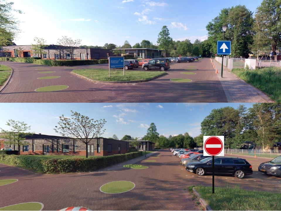 Op het parkeerterrein van de school wordt een éénrichtingsverkeer ingesteld. Hierdoor wordt de doorstroming en overzicht verbeterd. Ook vragen wij ouders/verzorgers om niet te parkeren in de directe buurt van de kruispunten en op plaatsen waar onze buren/overburen hun busjes laten parkeren voor het ophalen van hun kinderen (dus de ingangen daarvan vrij laten).