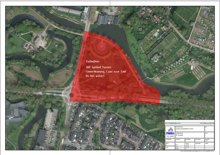 JOP (Jongeren Ontmoetings Plaats) Zuidwijken: het gebied omsloten door de Emmerikseweg, Laan naar Eme en het water;