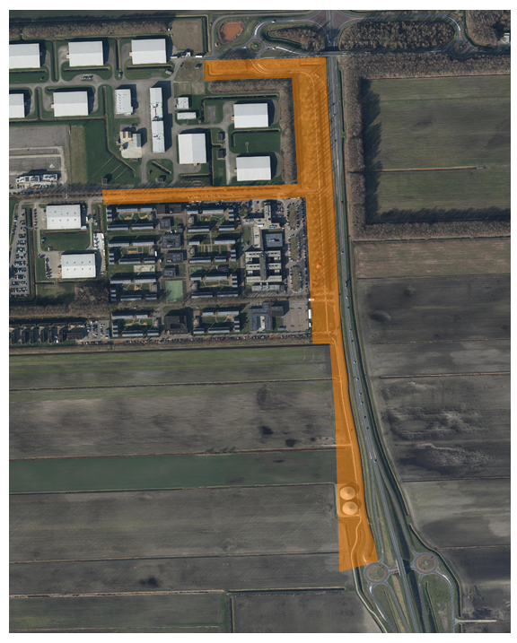 het gebied gelegen tussen de rotonde Ter Apelervenen/Nulweg en de westelijke rotonde Ter Apelervenen/A.G. Wildervanckweg, zoals in de bijlage bruinachtig gearceerd.