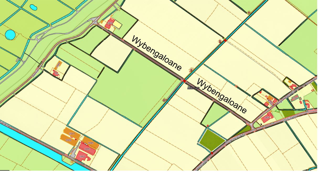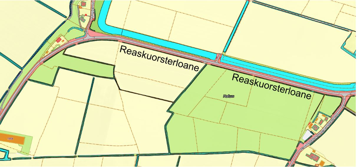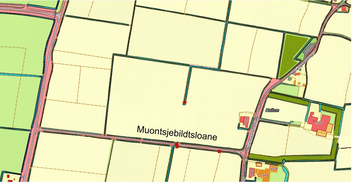 Situatietekeningen behorend bij het besluit tot het vaststellen van de straatnaam Wybengaloane in Marrum en Muontsjebildtsloane, Reaskuorsterloane en Noarderleechsteroprit in Hallum.
