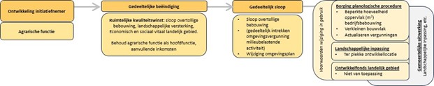 Door op interregionale schaal afspraken te maken hebben we een kader waardoor op een gelijke wijze gewerkt wordt met sloopmeters, groencompensatie, voorwaarden voor herbestemming en kwaliteitsverbetering van het landelijk gebied. We dagen gemeenten vooral uit om een ruimtelijke afweging te maken welke functies in welk gebied gewenst zijn. Hiervoor geeft het kader handvatten om tot een gemeentelijke uitwerking te komen.