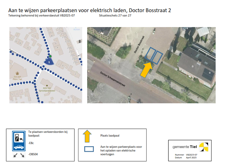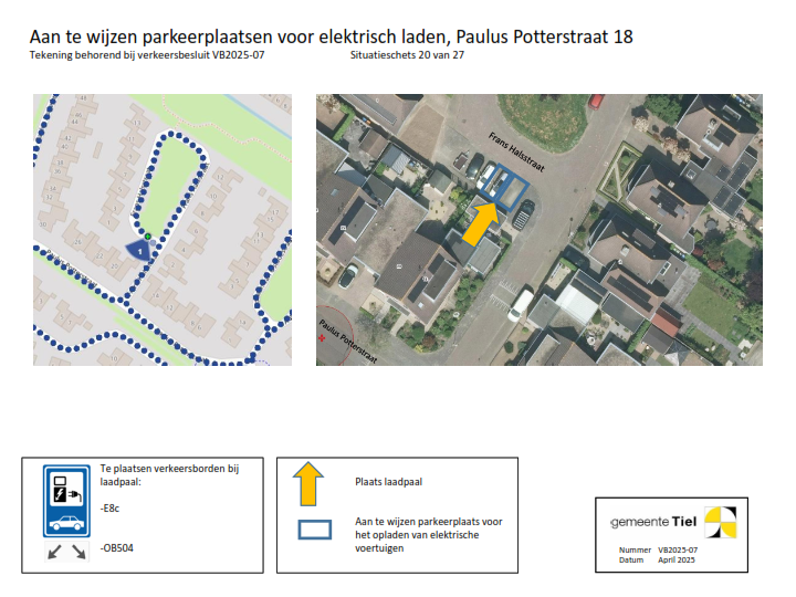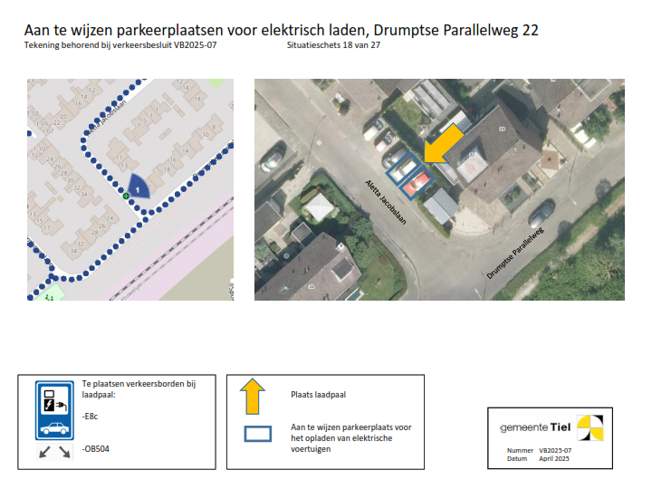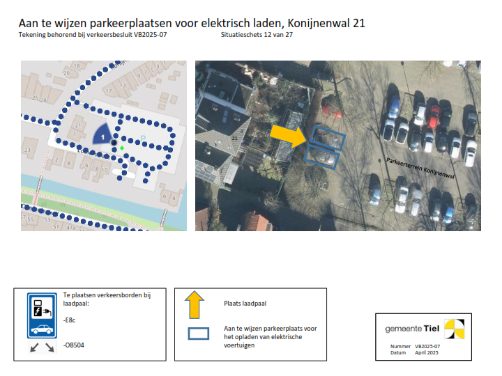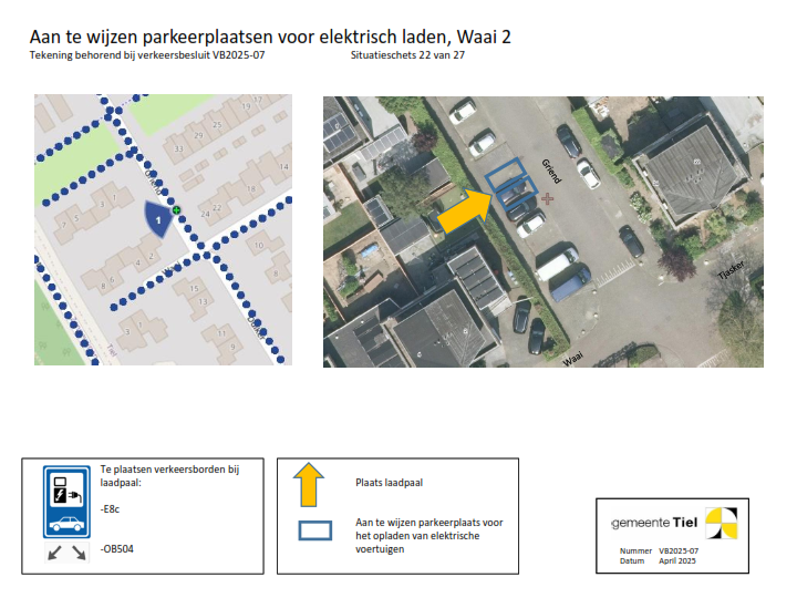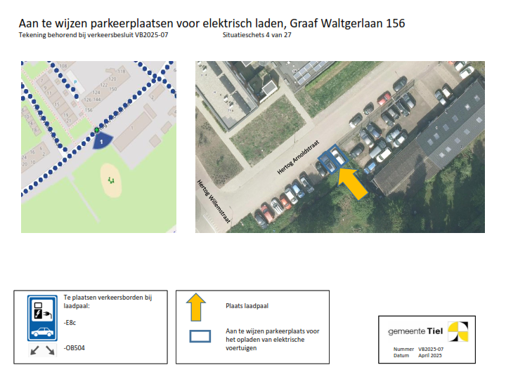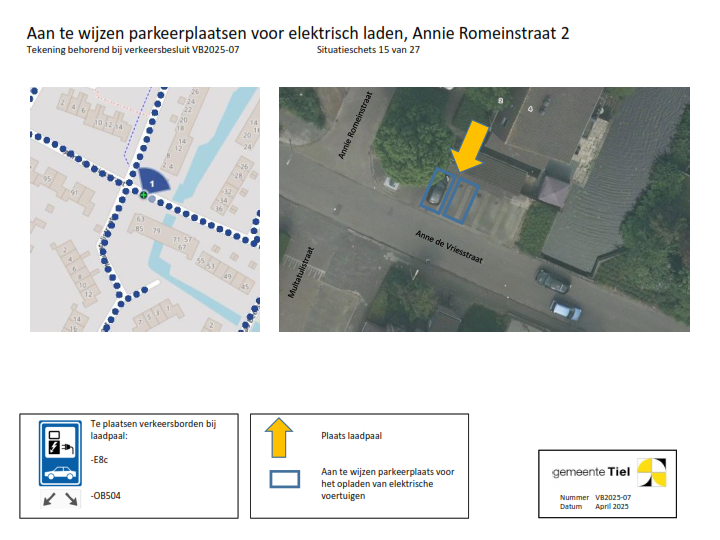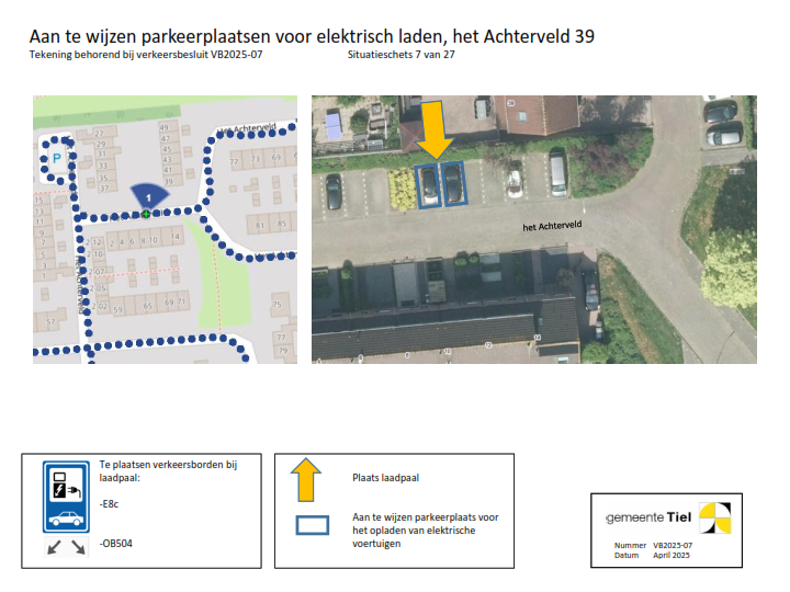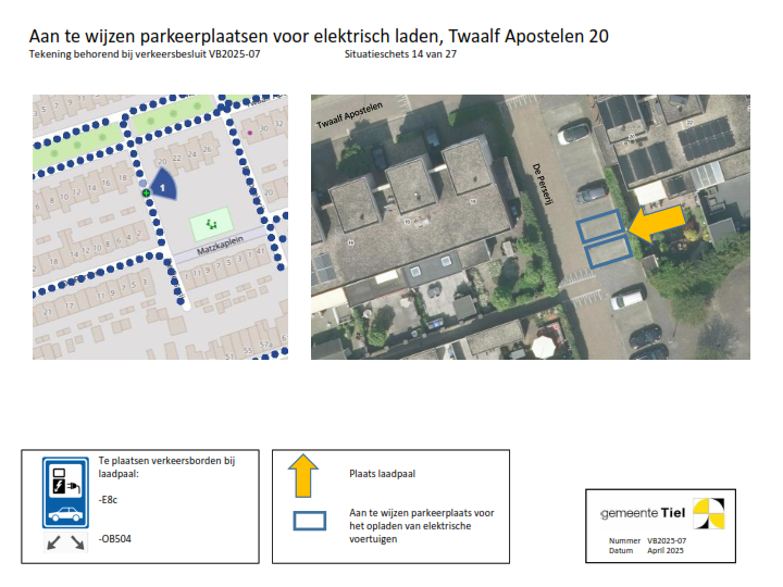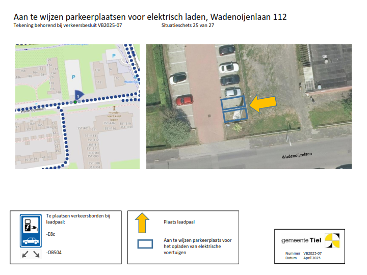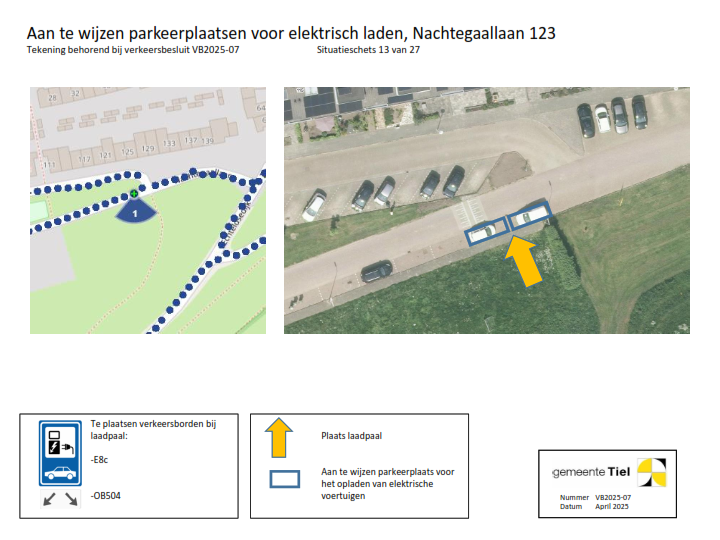 De gemeente Tiel behandelt het deelbesluit (locatie laadvoorziening) waartegen bezwaar wordt gemaakt als een separaat verkeersbesluit. De overige locaties blijven onderdeel van het verzamelverkeersbesluit. Voor deze locaties wordt de inrichting van de laadvoorziening in gang gezet.