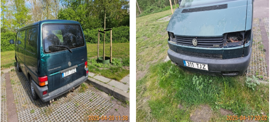 De eigenaar van het bovengenoemde voertuig kan niet worden achterhaald. Gelet op bovengenoemd artikel roepen wij de eigenaar of houder van dit voertuig op, deze voor het eindigen van de gestelde begunstigingstermijn van de aankondiging te verwijderen.