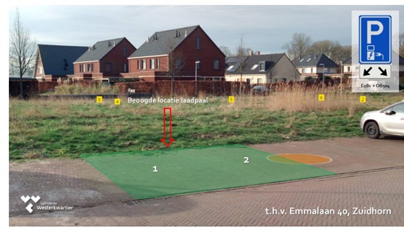 - dat het gaat om één laadpaal (met twee oplaadaansluitingen) op het openbare parkeerterrein t.h.v. t.h.v. Emmalaan 40 te Zuidhorn;