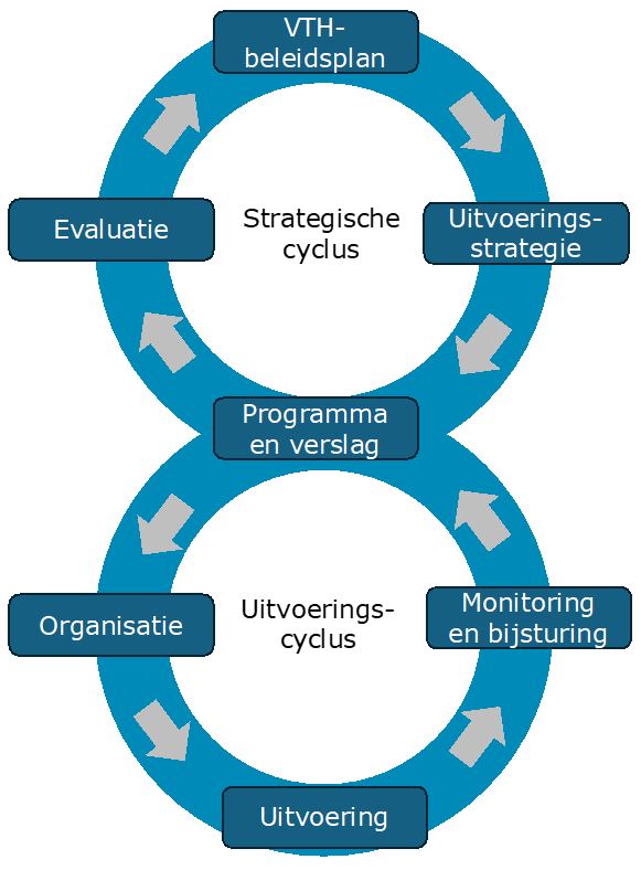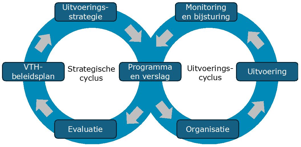 De VTH-beleidscyclus wordt beter gesloten. De uitvoering wordt niet alleen meer aan de opgaven gekoppeld, maar ook de resultaten van de uitvoering worden weer vertaald naar het beleid. Beleid en uitvoering worden daardoor meer gelijkwaardig naast elkaar geplaatst. Beleidsvorming komt – zeker onder de Omgevingswet – mede tot stand door de ervaringen in de uitvoering.