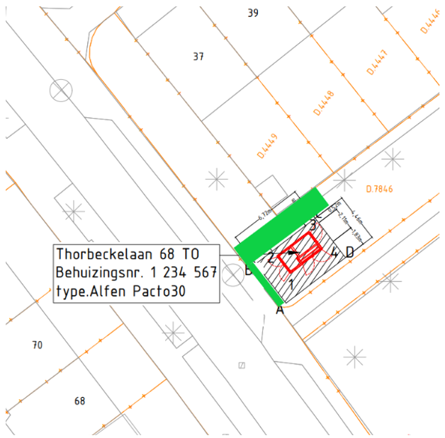 Figuur 1. Toekomstige situatietekening rondom de verkoop perceel grond aan de Thorbeckelaan tgov. 68 te Naarden.