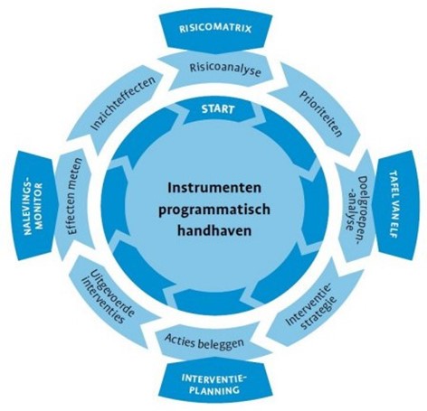 Dit proces van risicoanalyse, prioriteitstelling, doelgroepenanalyse, vormgeving van interventiestrategieën, beleggen van acties en effectmeting is een cyclisch en interactief proces waarbij voor het bereiken van naleving nieuwe kennis en inzichten worden gebruikt om de handhaving te verbeteren en te verfijnen.