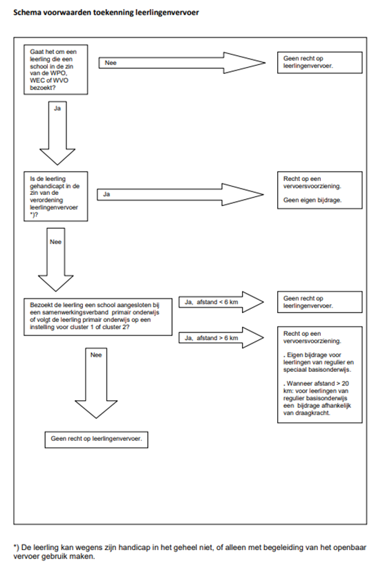 Zie voor voorwaarden toekenning leerlingenvervoer het ‘Schema voorwaarden toekenning leerlingenvervoer’.