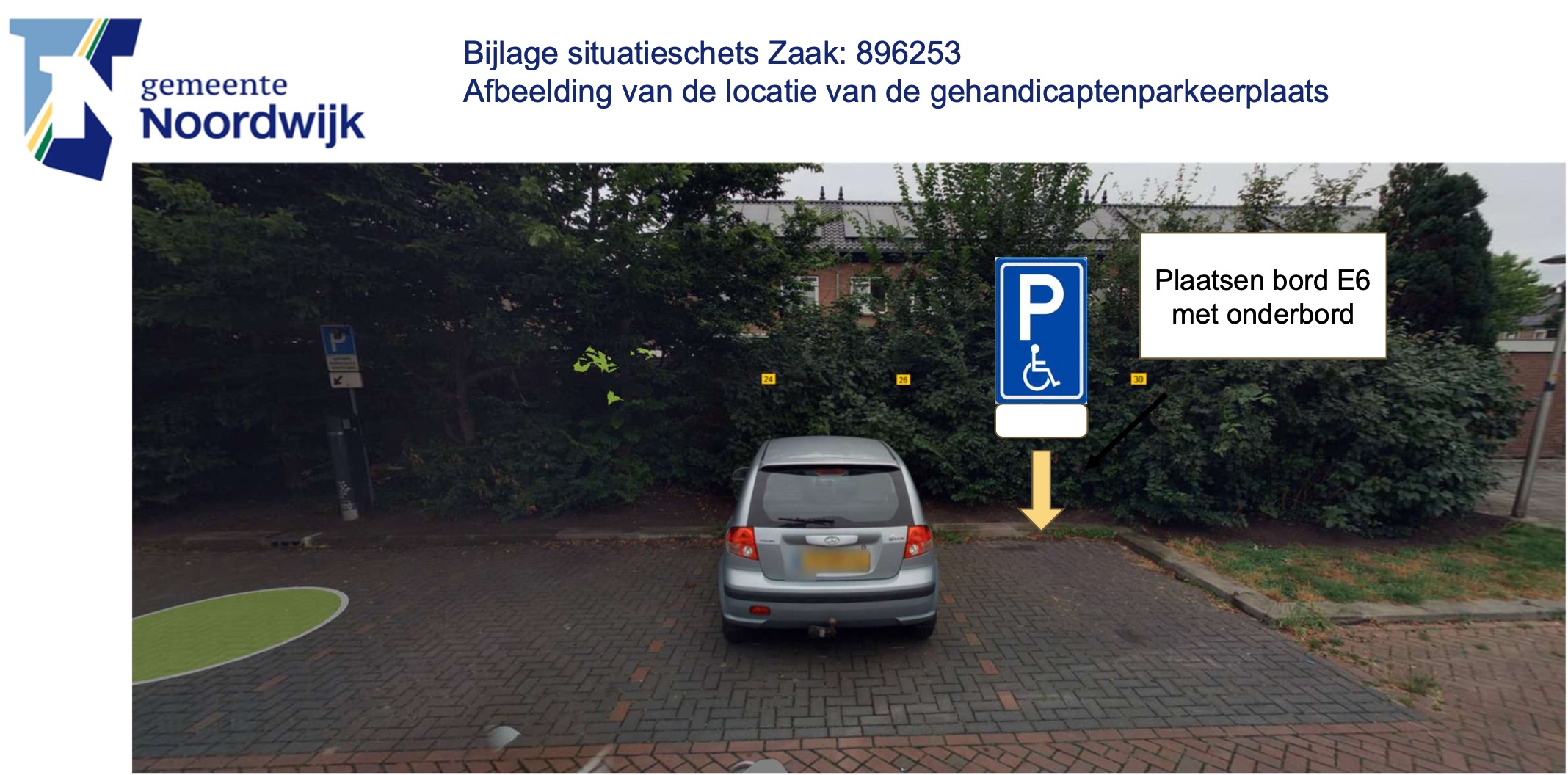 - De aanvraag is gedaan voor een gehandicaptenparkeerplaats op een (deel van) een binnen de bebouwde kom gelegen weg, die in eigendom, beheer en onderhoud is van de gemeente Noordwijk;
