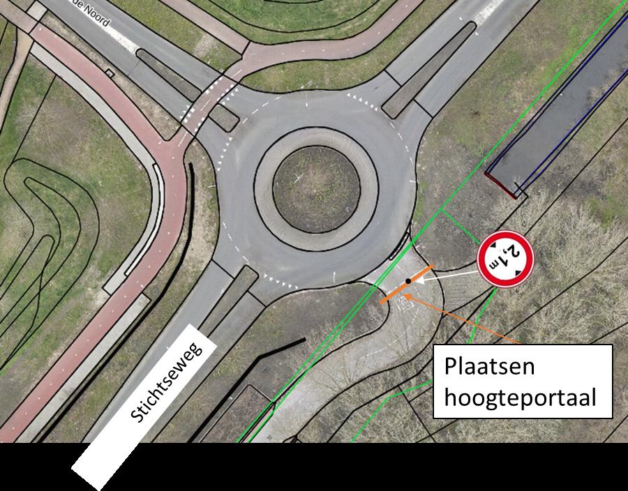 • dit afgedwongen wordt met een fysieke constructie die minimaal 2,3 meter hoog is, om zo misverstanden vanuit weggebruikers over de hoogte te voorkomen;