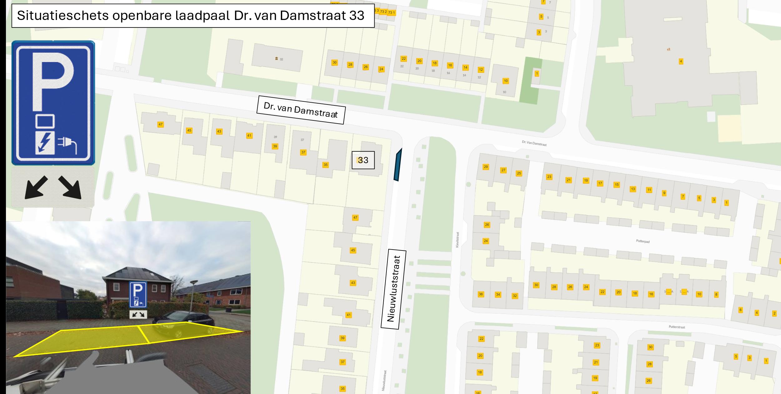 dat op basis van de hiervoor genoemde beleidsregel en de plankaart laadinfrastructuur een geschikte locatie is gevonden voor een laadvoorziening op de Nieuwluststraat ter hoogte van de Dr. van Damstraat 33;