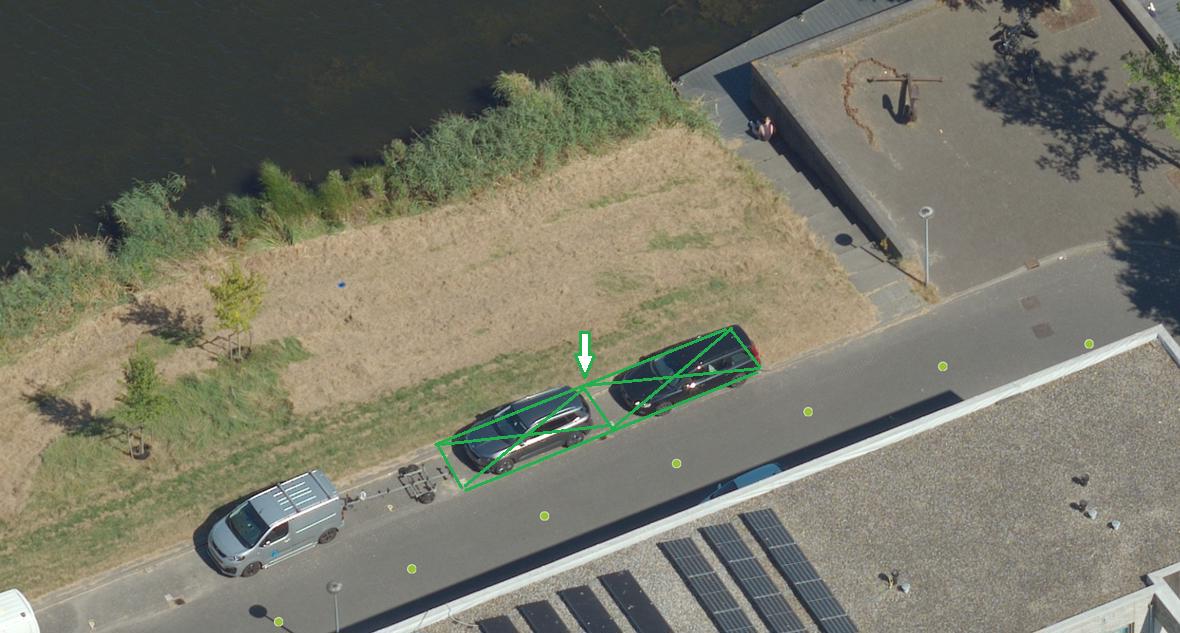 De parkeerplaatsen zijn alleen bedoeld voor het opladen van elektrische auto’s. Daarom plaatsen we het verkeersbord E08c (dit staat in bijlage I van het RVV 1990). We plaatsen ook het verkeersbord OB504 daaronder. Dit is een bord met twee pijlen die wijzen naar de parkeerplaatsen.