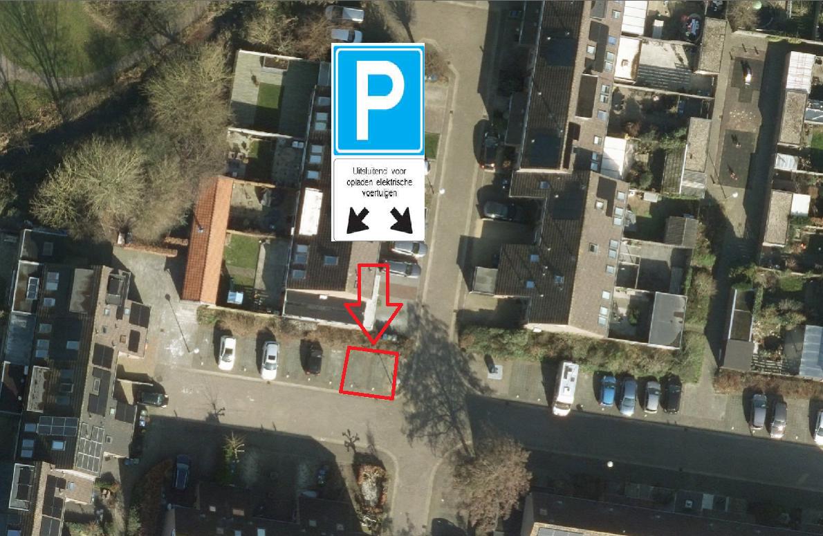 - door middel van het plaatsen van het verkeersbord E4 van bijlage 1 van het RVV 1990 met een onderbord met de tekst ‘opladen elektrische voertuigen’ – en een onderbord met pijlen, waaruit blijkt dat het bord voor twee parkeerplaatsen van toepassing is- op de Pinksterbloem ter hoogte van nummer 16, een tweetal parkeerplaatsen te reserveren op het aangrenzende parkeerterrein ten behoeve van het opladen van elektrische voertuigen.