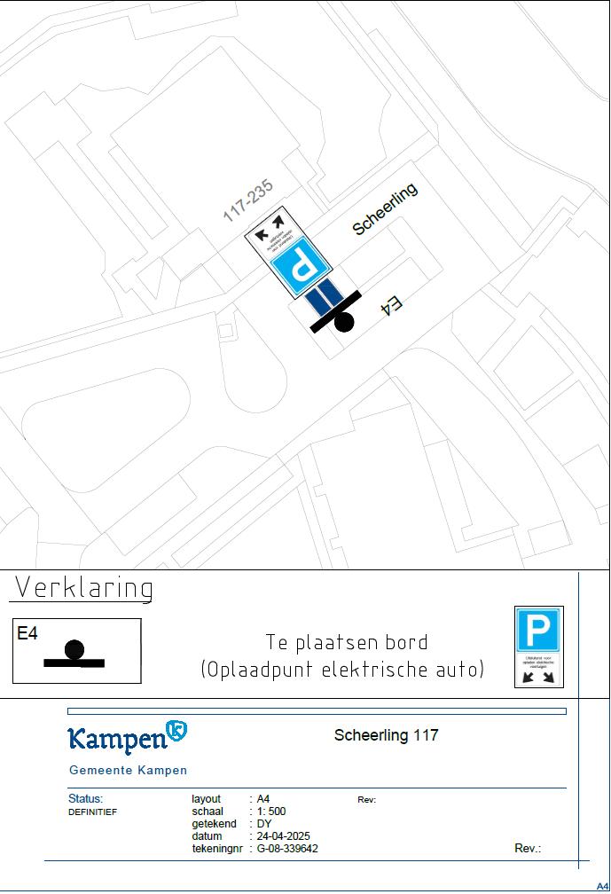 Verkeersbesluit gereserveerde parkeerplaatsen voor opladen elektrische voertuigen aan de voorkant van de Scheerling 117 t/m 235 te Kampen