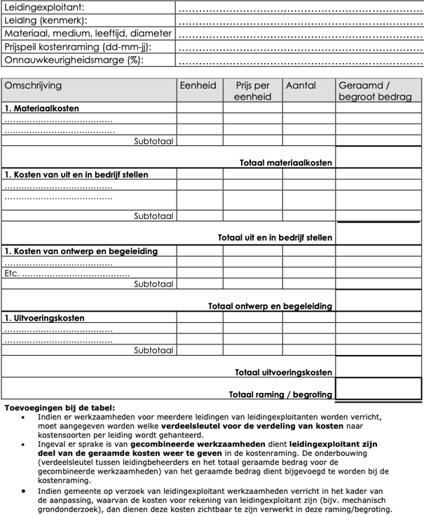 Belanghebbende dient zo spoedig mogelijk, doch uiterlijk binnen een termijn van vier jaar nadat hij een aanwijzing heeft gekregen tot het verleggen van een leiding, bij het college een verzoek in om voorlopige vaststelling van nadeelcompensatie. Hierbij wordt gebruik gemaakt van het formulier, opgenomen in bijlage 1.