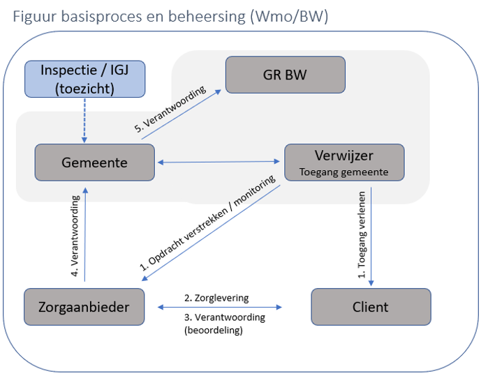 Om uitvoering te geven aan jeugdhulp en maatschappelijke ondersteuning zijn basisprocessen ingericht om te zorgen dat verzoeken van cliënten worden beoordeeld door de gemeente al dan niet in regionaal verband, gevolgd door de inzet van hulp of ondersteuning door een aanbieder. Voor jeugdhulp zijn er daarnaast nog externe verwijzers die op grond van hun wettelijke bevoegdheid een cliënt direct naar een aanbieder kunnen doorverwijzen.