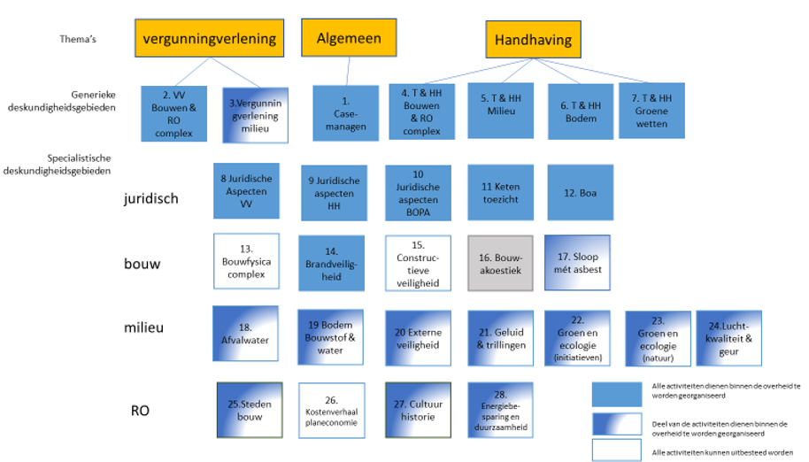 Bepaalde activiteiten binnen de verschillende deskundigheidsgebieden kunnen in sommige gevallen worden uitbesteed, terwijl andere juist binnen de overheid moeten worden uitgevoerd.