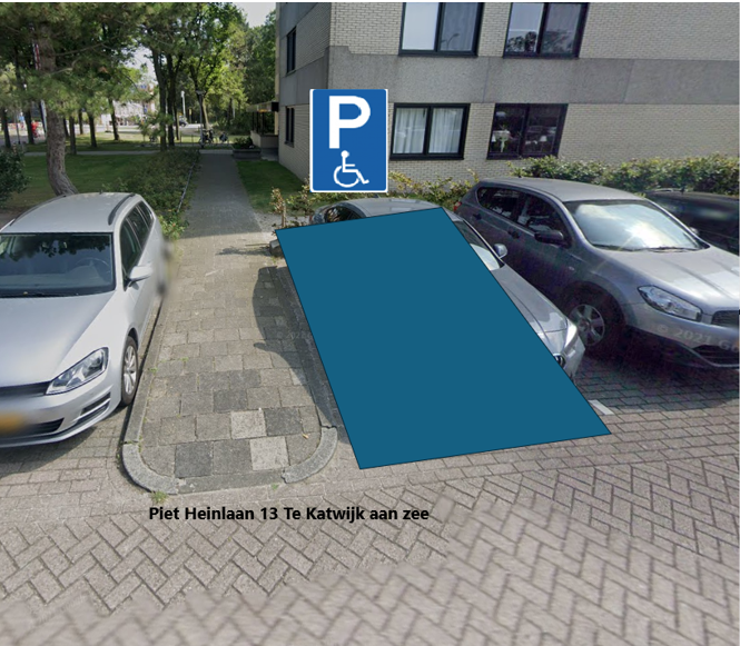 Het college van burgemeester en wethouders van de gemeente Katwijk nemen een verkeersbesluit voor het aanwijzen van een gereserveerde gehandicaptenparkeerplaats. Onlangs is een aanvraag ingediend om ter hoogte van de Piet Heinlaan 13 nabij de ingang van het appartementencomplex Vijverhof te Katwijk aan Zee een gereserveerde gehandicaptenparkeerplaats aan te leggen. Om ervoor te zorgen dat de parkeerplaats alleen gebruikt kan worden door de begunstigde, is gemeente voornemens om bebording te plaatsen die aangeeft dat de nabijgelegen parkeerplaats alleen gebruikt mag worden voor het parkeren van het voertuig met het op het onderbord vermelde kenteken.