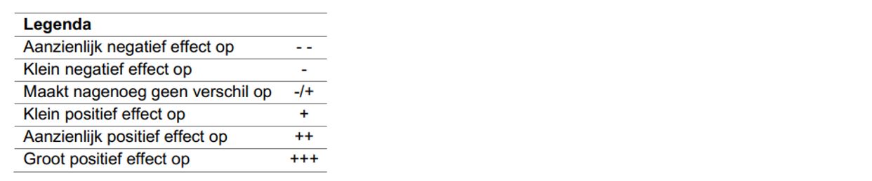* Negatief effect = kostenverhogend / restafval verhogend / recycling verlagend