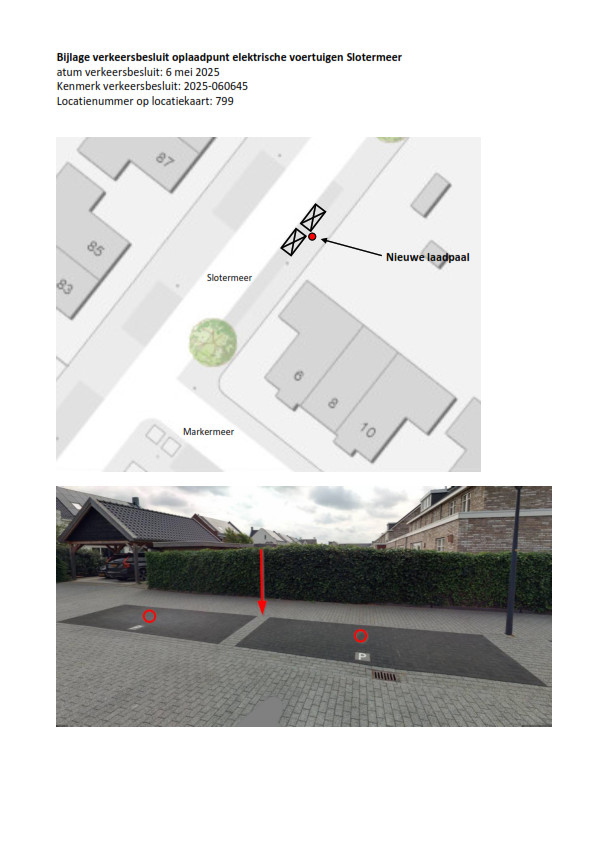 VERKEERSBESLUIT AANWIJZEN PARKEERPLAATSEN VOOR ELEKTRISCHE VOERTUIGEN LANGS SLOTERMEER