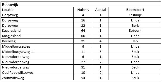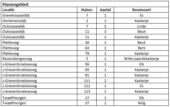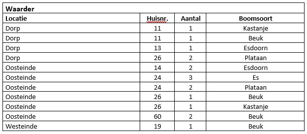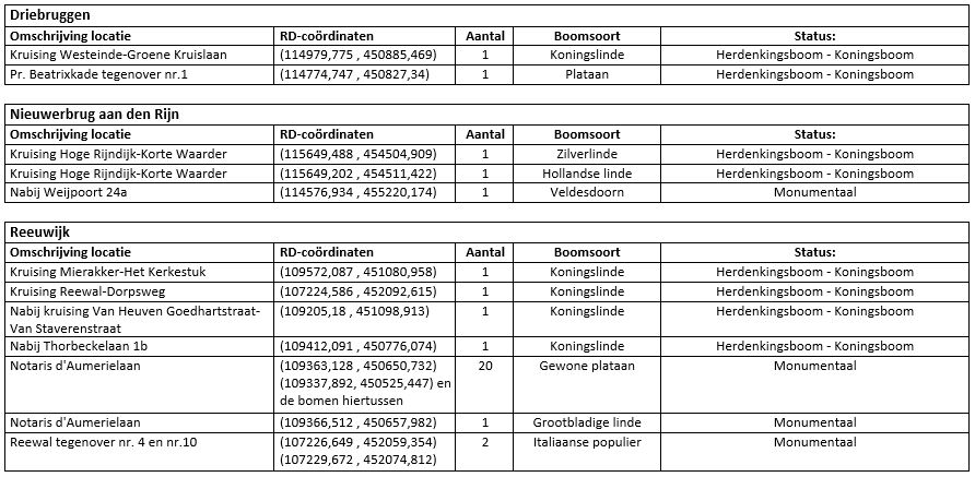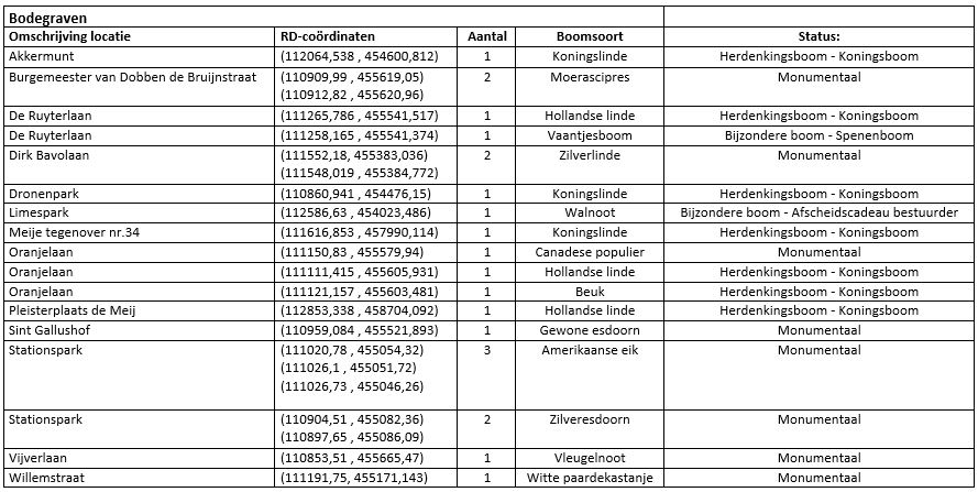 Bijlage: Bomenlijst monumentale en andere beschermenswaardige bomen gemeente Bodegraven-Reeuwijk 2025. Kortweg: ‘behoudenswaardige bomenlijst’.