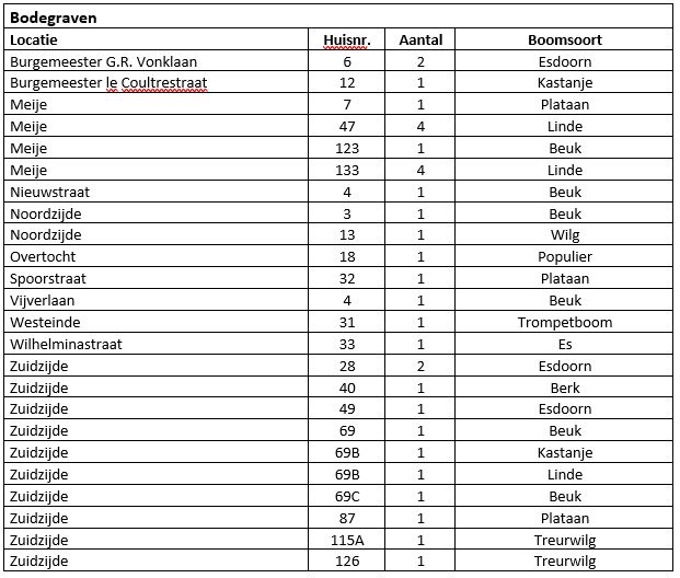 De eerdere (huidige) behoudenswaardige bomenlijst, zoals bedoeld in artikel 4:11 van de Algemene plaatselijke verordening gemeente Bodegraven-Reeuwijk in te trekken.