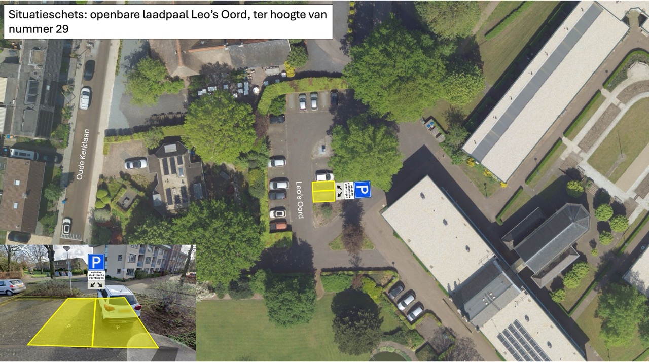 om op de Leo’s Oord ter hoogte van huisnummer 29 twee parkeervakken gelegen bij het oplaadpunt voor elektrische voertuigen aan te wijzen als parkeerplaats voor het opladen van elektrische voertuigen, volgens de bijlage bij dit besluit;