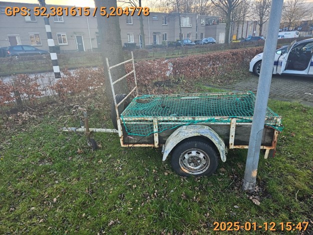 Op het gras ter hoogte van de rode klaverstraat perceelnummer 27 te Almere is een aanhangwagen geplaatst in strijd met het bepaalde in artikel 5:5 van de Algemene Plaatselijke Verordening (APV 2011. Op grond van dit artikel is het verboden met een voertuig dat voor recreatie of anderszins voor andere dan verkeersdoeleinden wordt gebruikt zoals een caravan, een kampeerwagen, een aanhangwagen, een keetwagen of ander dergelijk voertuig langer dan op drie achtereenvolgende dagen zonder wezenlijke tijdsonderbreking te plaatsen of te hebben op de weg binnen de bebouwde kom.