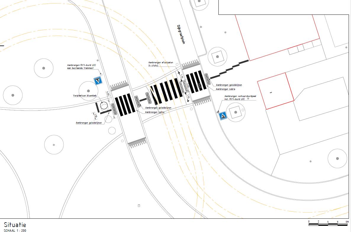 Door het plaatsen van markering zoals bedoeld in hoofdstuk IV, paragraaf 2, lid 9, van de Uitvoeringsvoorschriften van het Besluit administratieve bepalingen inzake het wegverkeer (BABW), inclusief het plaatsen van verkeersborden conform model L2 van Bijlage I van het RVV 1990, een voetgangersoversteekplaats op te richten op het Dijkgraafplein.