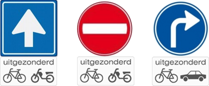 Het instellen van eenrichtingsverkeer uitgezonderd (brom)fietsers door het plaatsen van de borden C2 «eenrichtingsweg, in deze richting gesloten voor voertuigen, ruiters en geleiders van rij- of trekdieren of vee», C3 «eenrichtingsweg» en OB54 «uitgezonderd (brom)fietsers» van bijlage 1 van het RVV 1990 de volgende (delen van) wegen aan te wijzen als eenrichtingsweg: