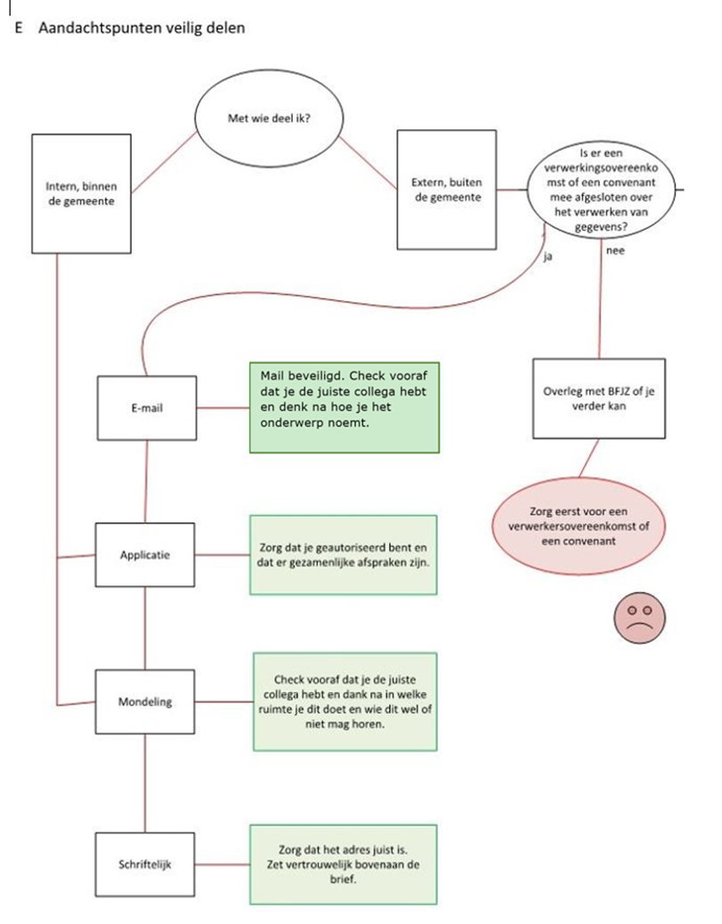 Alle medewerkers (inclusief inhuur/externen) zijn verantwoordelijk voor de bescherming van de privacy van betrokkenen bij de uitvoering van hun werkzaamheden. Dat betekent dat iedereen zorgt voor een veilige, rechtmatige, behoorlijke en transparante verwerking van persoonsgegevens. De medewerkers kunnen hiervoor gebruik maken van het stroomschema dat bijgevoegd is in bijlage A. “Afwegingskader zorgvuldig verwerken en delen van persoonsgegevens”.
