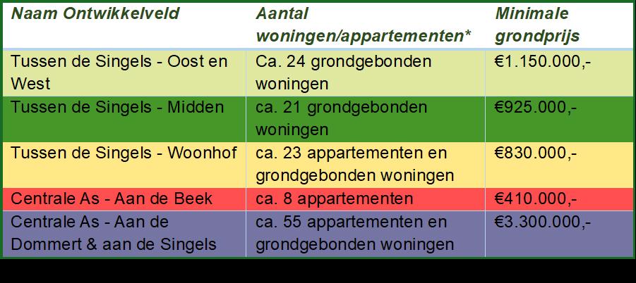 *De genoemde aantallen zijn een indicatie. In de verkoopprocedure is er stedenbouwkundige vrijheid om zelf met een voorstel te komen voor het exacte aantal woningen. Bij de gunning worden de exacte aantal woningen vastgelegd in de verkoopovereenkomst.
