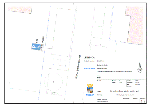 Verkeersbesluit voor het opheffen van een parkeerplaats voor mindervaliden aan Pieter Dekkersstraat te Nuenen