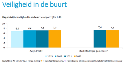 Elke twee jaar wordt onder onze inwoners de Veiligheidsmonitor gehouden. In deze veiligheidsmonitor zijn inwoners op verschillende onderwerpen bevraagd. Sinds 2015 zien we een stijgende lijn voor het rapportcijfer voor de veiligheid in de buurt. In 2015 beoordeelde de inwoner dit met een 6,9, in 2023 is dat een 7,3. Dit is eenzelfde score als die van vergelijkbare steden.
