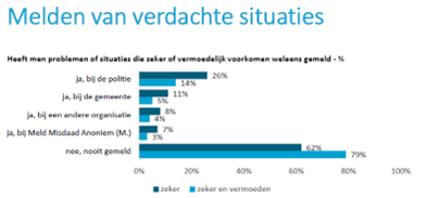Hoewel de aantallen aangiften en meldingen stabiel lijkt te zijn, blijkt dus ook dat veelal incidenten of verdachte situaties niet gemeld worden en dit cijfer dus geen reëel beeld vertoont.