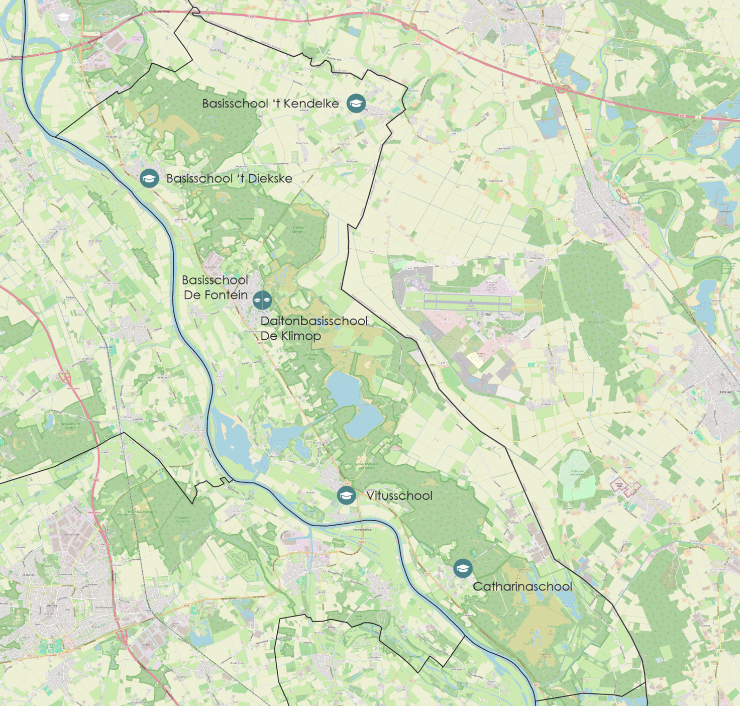 We kunnen deze gezamenlijke onderwijsvisie niet los zien van het jeugdbeleid van de verschillende gemeentes omdat ze beide streven naar de ontwikkeling en het welzijn van kinderen en jongeren. Het jeugdbeleid richt zich op gunstige omstandigheden en ondersteuning, terwijl onderwijs kennis en vaardigheden biedt. Het bevorderen van een samenhangende aanpak leidt tot optimale kansen van kinderen en jongeren. Onderwijs vindt al lang niet meer uitsluitend plaats binnen de vertrouwde schoolmuren- en tijden. Door de school als leefomgeving te beschouwen wordt de omgeving vanzelfsprekend ook deel van het leren en (buiten)spelen. Als de directe omgeving een rol speelt in het leren en ontwikkelen, worden leerlingen meer uitgedaagd, gestimuleerd tot ontwikkeling en bewegen en groeien zij kansrijk op (van curatief naar preventief) zoals in het jeugdbeleid opgenomen. Daarnaast wordt betrokkenheid met de buurt, de jeugd, de kernpartners, het bedrijfsleven en de maatschappij, vergroot. Samenwerking en anders organiseren is het sleutelwoord, veiligheid en toegankelijkheid zijn hierbij kernbegrippen voor multifunctioneel gebruik van (onderwijs) huisvesting (voorzieningen) in de buurt door scholen en voor andere maatschappelijke (gezamenlijke) doeleinden. Goede voorzieningen en juist gebruik daarvan kunnen bijdragen aan het vergroten van de wisselwerking tussen school en haar partners. Dit geldt ook voor voorzieningen voor het bewegingsonderwijs (gymzalen, openbare ruimte). Het is zaak om bij nieuwe huisvesting te zorgen dat deze nabij en toegankelijk zijn. Het is van essentieel belang dat we met elkaar zorg blijven dragen voor kwalitatief goed basisonderwijs in alle dorpen- en SBO/ SO/V(S)O onderwijs in onze regio (Maasduinen) en oog blijven houden voor regionale initiatieven zoals Rebound of Time out. De mogelijkheid voor kinderen om in hun directe gezonde leer en leefomgeving naar school te gaan op een passende plek zorgt ervoor dat het kind zich optimaal kan ontwikkelen op de manier die bij hem/haar past. Het aanbieden van een gevarieerd onderwijsaanbod, waarbij het lukt om samen anders te organiseren door bijv. een doorlopende leerlijn 0-18 jaar aan te bieden. Onderwijs nabij geeft ouder(s)/verzorger(s) en leerlingen de ruimte om op zoek te gaan naar een school die aansluit bij de leer- en ondersteuningsbehoeften van het kind. Elke vorm van basisonderwijs is voorzien van een groene en blauwe speelplaats waar de schoolbesturen samen met de gemeente verantwoording voor dragen. Voor de doorlopende leerlijn is het van belang om ook samen te werken met de MBO- en HBO scholen in de regio om de doorlopende leerlijn te versterken binnen het vo om de jeugd te behouden voor de arbeidsgelegenheid in de regio.