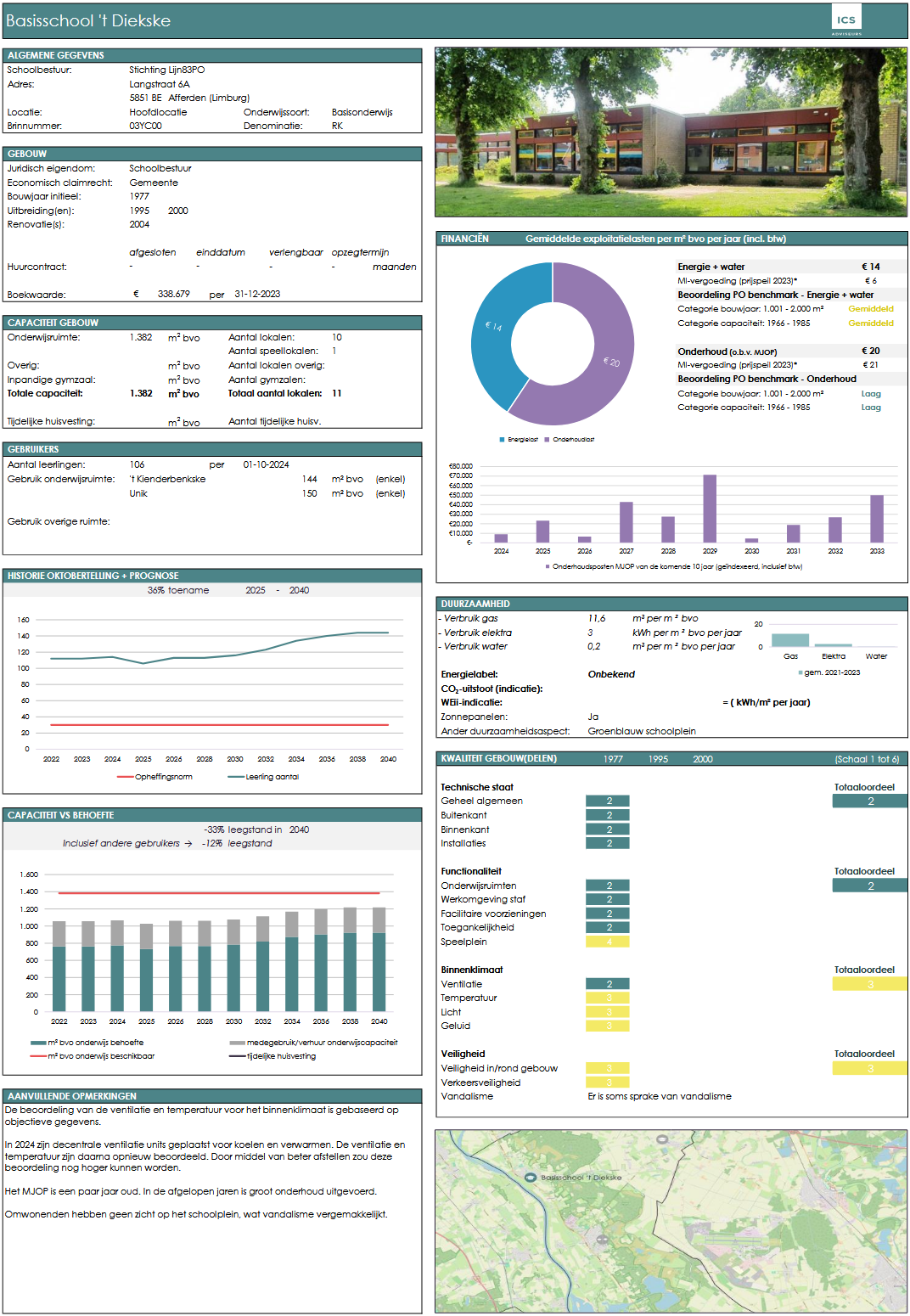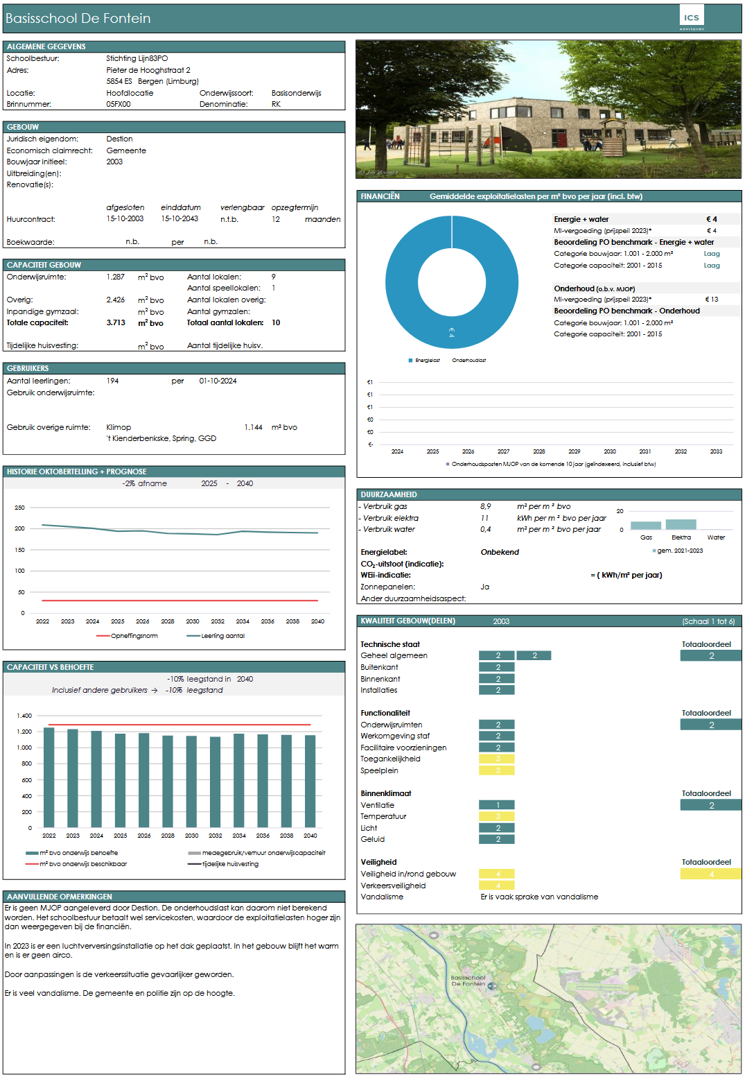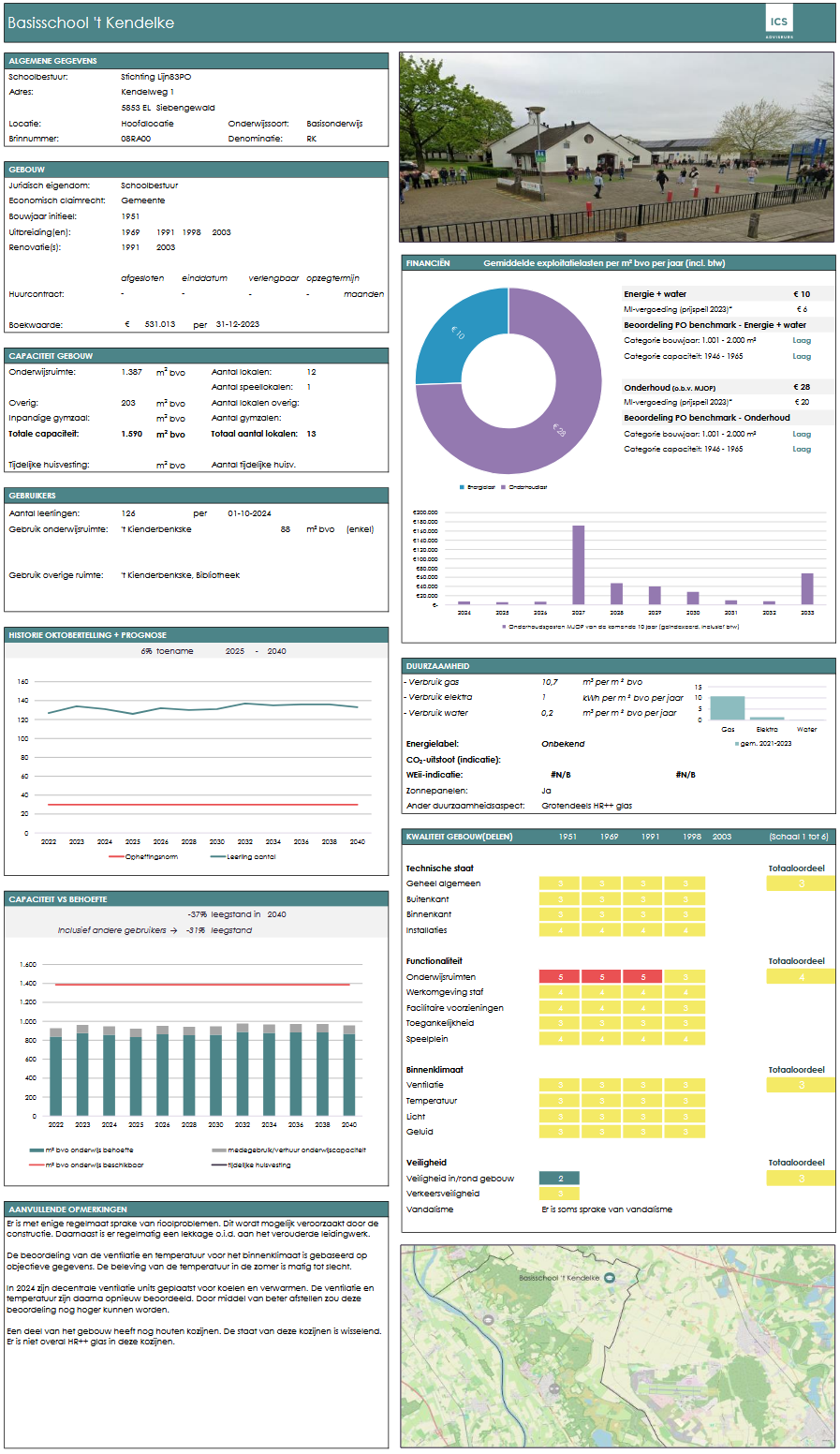 Het Integraal Huisvestingsplan (IHP) is opgesteld voor de gemeenten Bergen, Gennep en Mook en Middelaar. ICSadviseurs is samen met de schoolbesturen, de kinderopvangorganisatie en de gemeente het IHP aan het actualiseren. Als aanvulling op de actualisatie op het bovenstaande onderzoek is er door de gemeente gevraagd om voor het schoolgebouw van ’t Kendelke inzicht te krijgen in de toekomstbestendigheid van het gebouw.
