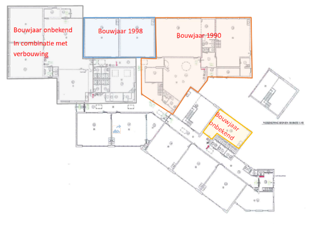 De school is door de jaren heen in verschillende fases gebouwd en heeft tussentijdse renovaties ondergaan. Deze gefaseerde bouw en renovaties hebben niet geleid tot grote variaties in de kwaliteit van het gebouw op verschillende punten. Daarom is ervoor gekozen om het gebouw als geheel te beoordelen. Zie onderstaande afbeelding voor de verschillende (ver)bouwperiode: