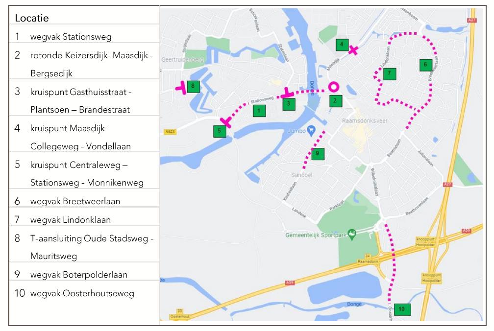 Afbeelding 1: Top 10 van aandachtslocaties verkeersveiligheid