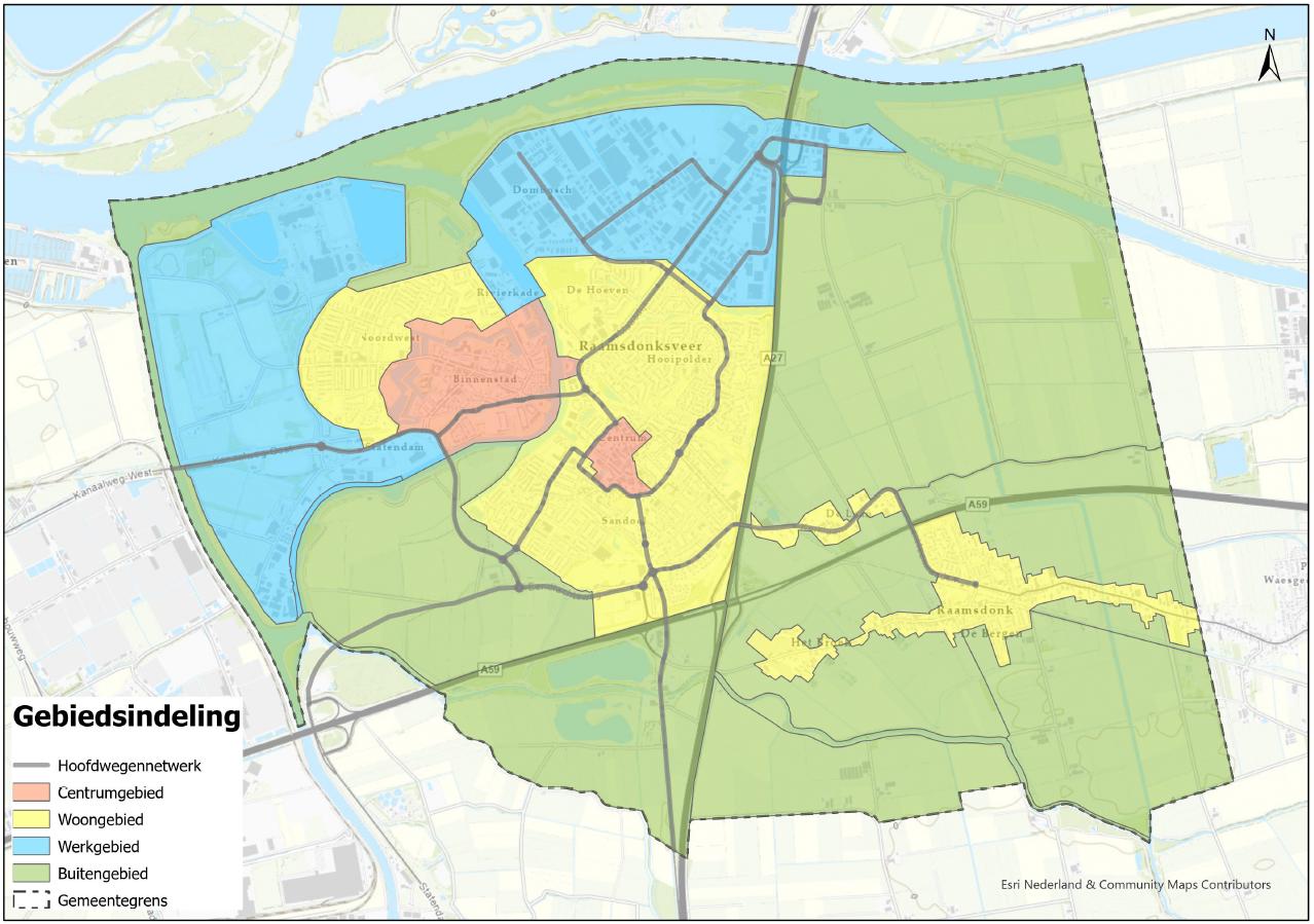 De visie is gebiedsgericht opgesteld om daarmee aan te sluiten op de omgevingsvisie. Er zijn vijf gebieden gedefinieerd, namelijk: hoofdnetwerk, woongebied, werkgebied, centrumgebied en buitengebied. Via het hoofdnetwerk van wegen vinden verkeersbewegingen tussen de gebieden plaats. Afbeelding 3 toont de gebiedsindeling.