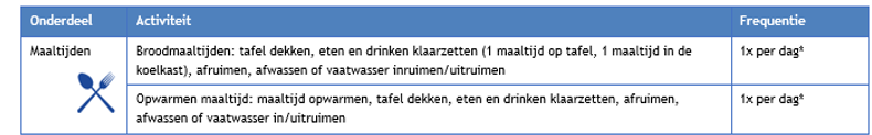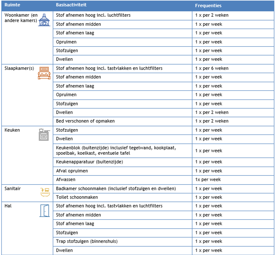 Frequenties benodigd voor een schoon en leefbaar huis (basisactiviteiten)