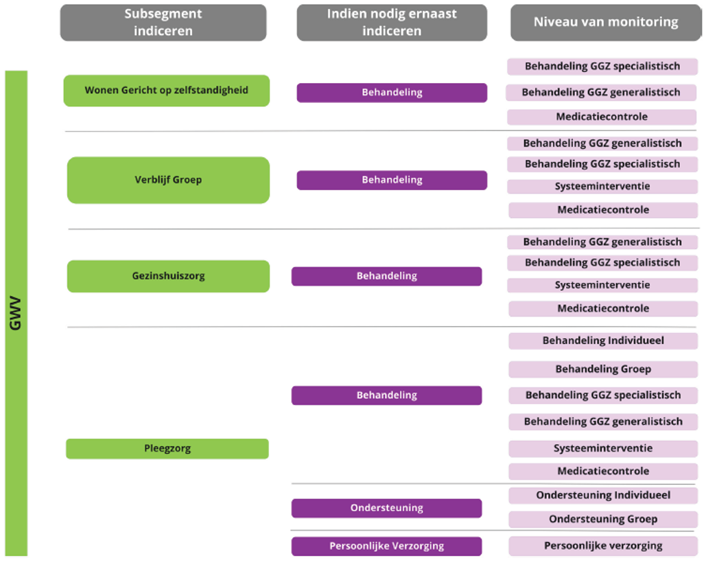 Er is een onderscheid tussen begeleiding en behandeling. Het accent van begeleiding ligt op het eigen maken van vaardigheden of nieuw gedrag door de inwoner door langdurig oefenen en trainen. Het is een tussenvorm waarbij behandeling te zwaar is en de ondersteuning van de eerstelijns hulpverlener (zoals (jeugd)verpleegkundige of Voormekaar) of een vrijwilliger niet toereikend is. Voor behandeling gelden zwaardere functie-eisen (minimaal postmaster Stichting Kwaliteitsregister Jeugd (SKJ) voor de regiebehandelaar) dan bij begeleiding (Hbo-opleiding, SKJ-registratie). Soms kan binnen behandeling diagnostiek en advisering volstaan om (het systeem van) de inwoner voldoende handvatten te geven om met de problematiek om te gaan en is behandeling of zelfs begeleiding niet noodzakelijk.