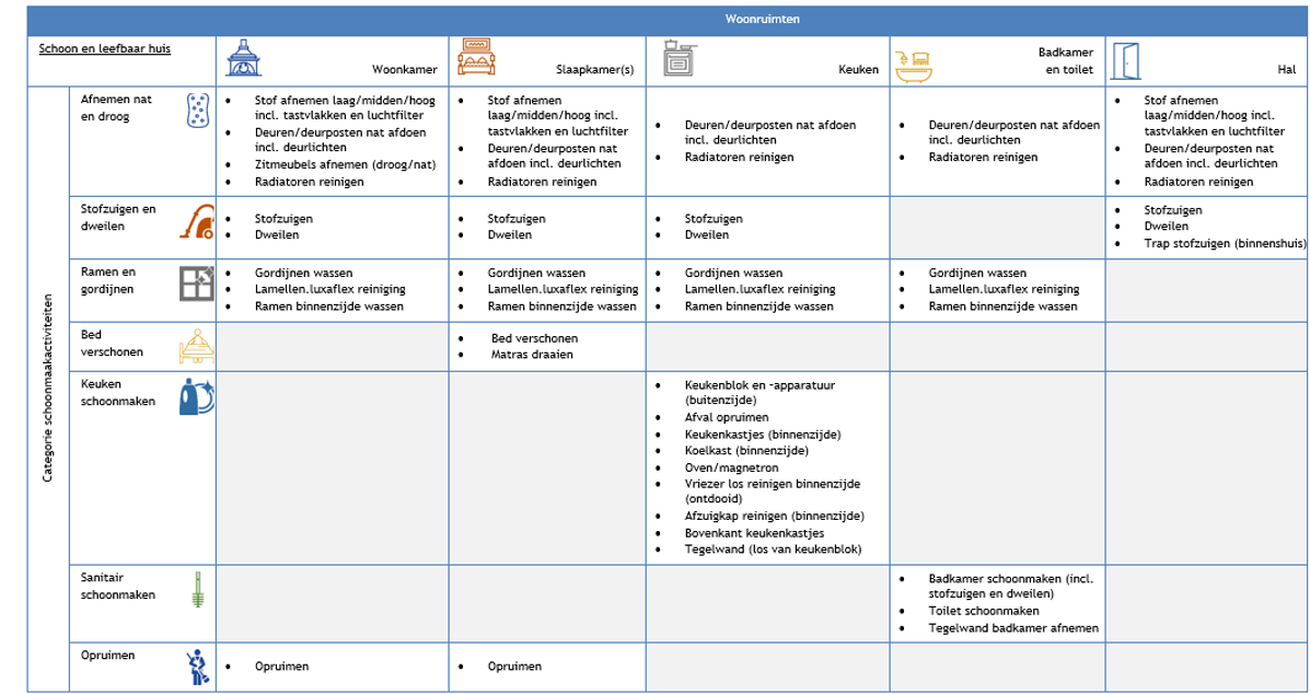Activiteiten benodigd voor een schoon en leefbaar huis