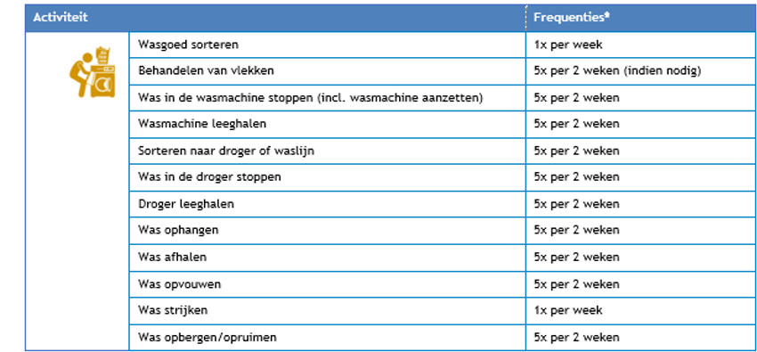 Frequentie en activiteiten benodigd voor de wasverzorging
