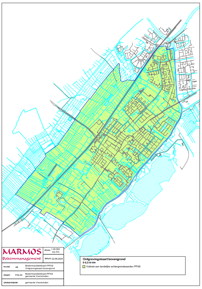 De bodemkwaliteitskaart voor PFAS is weergegeven in bijlage 4A t/m 4C: